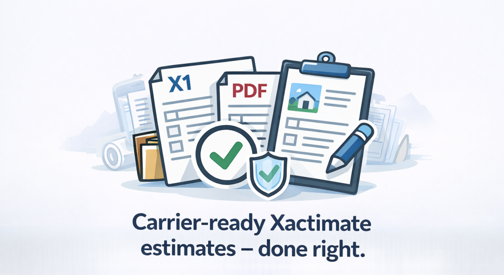 You receive a clean, carrier-ready Xactimate file and PDF.