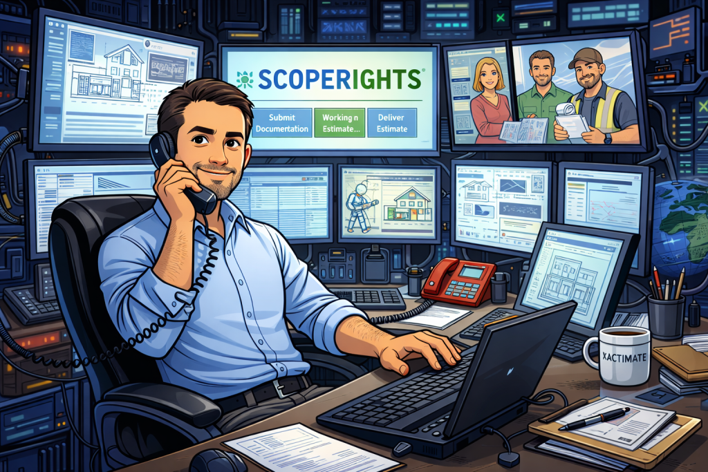 Remote scope writing for restoration and rebuild contractors. Documentation that helps you get paid without spending nights writing estimates.